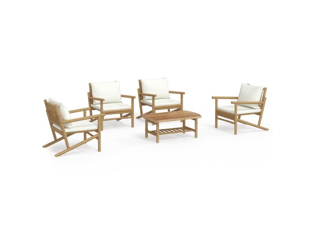 5dílná zahradní sedací souprava krémově bílé podušky bambus 3156477