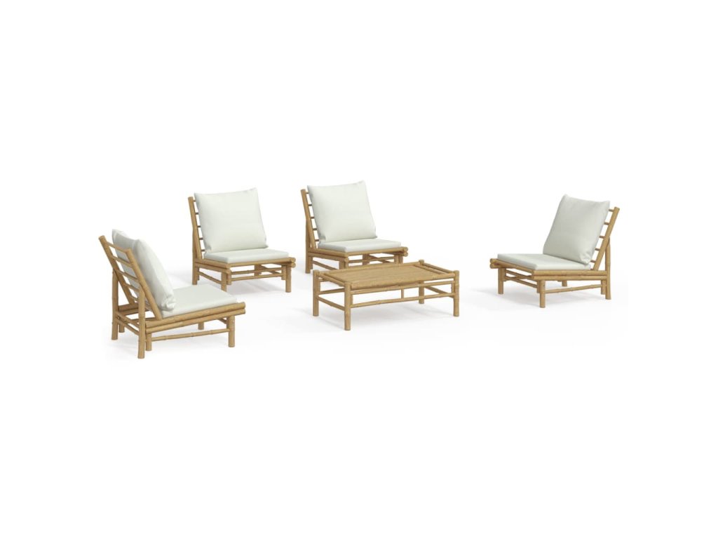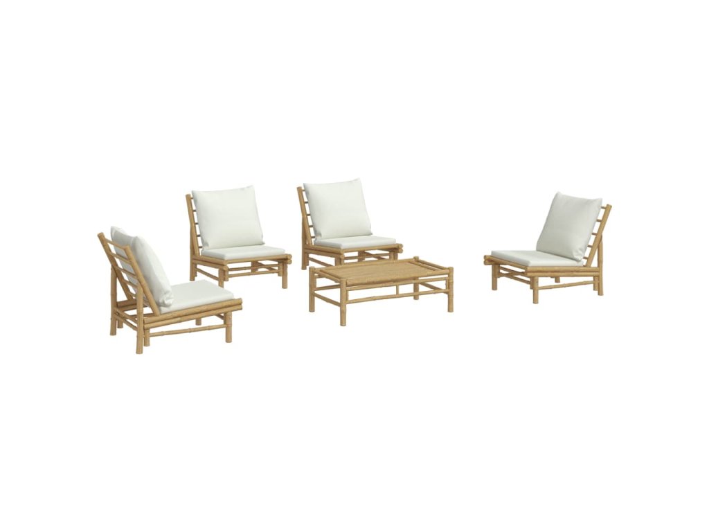 5dílná zahradní sedací souprava krémově bílé podušky bambus 3156487