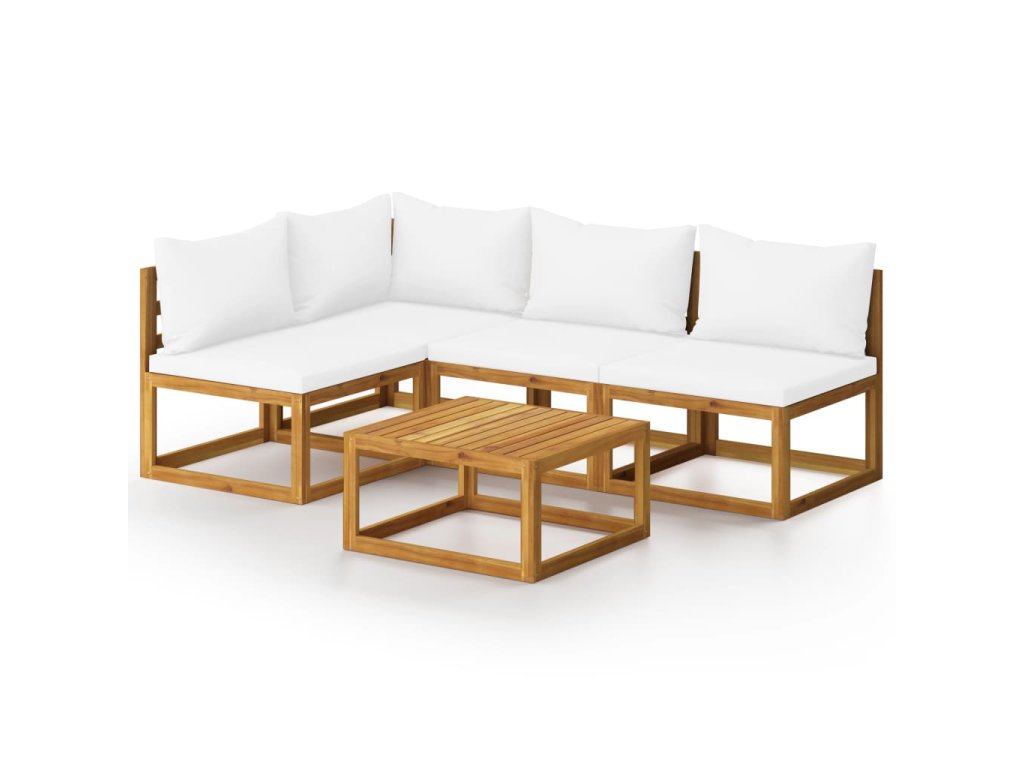 5dílná zahradní sedací souprava krémové podušky masivní akácie 3057657