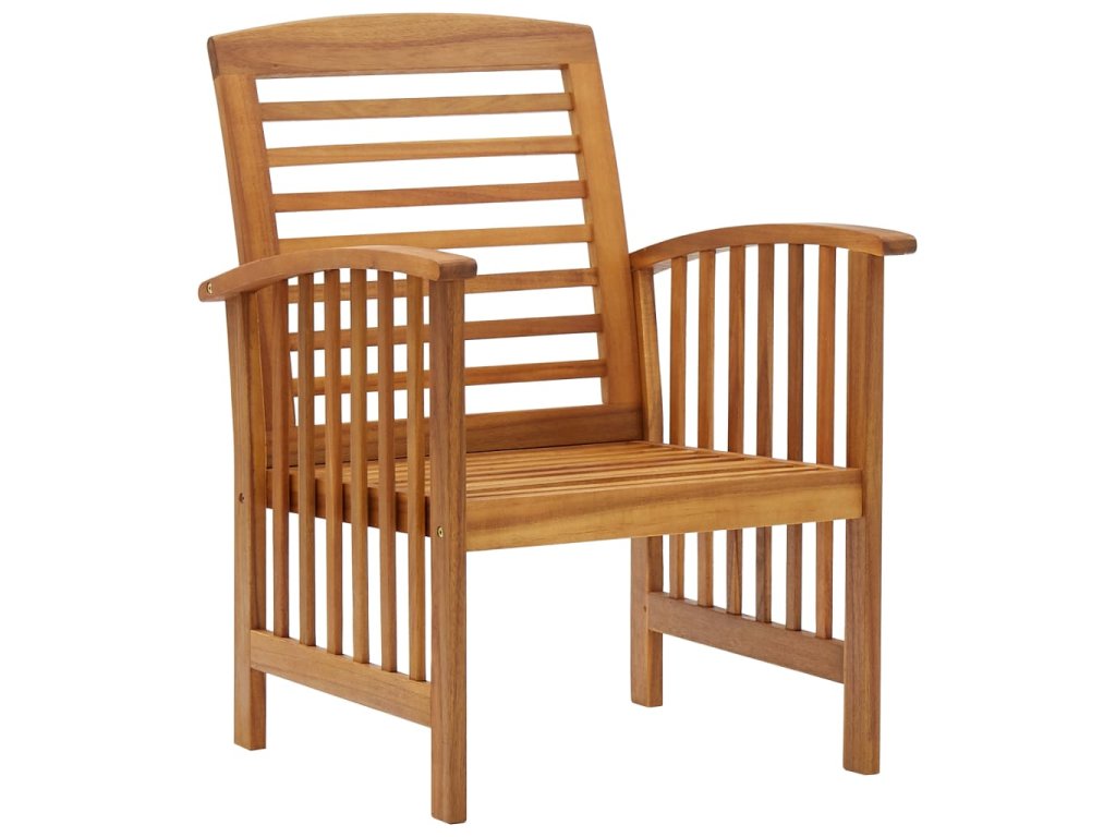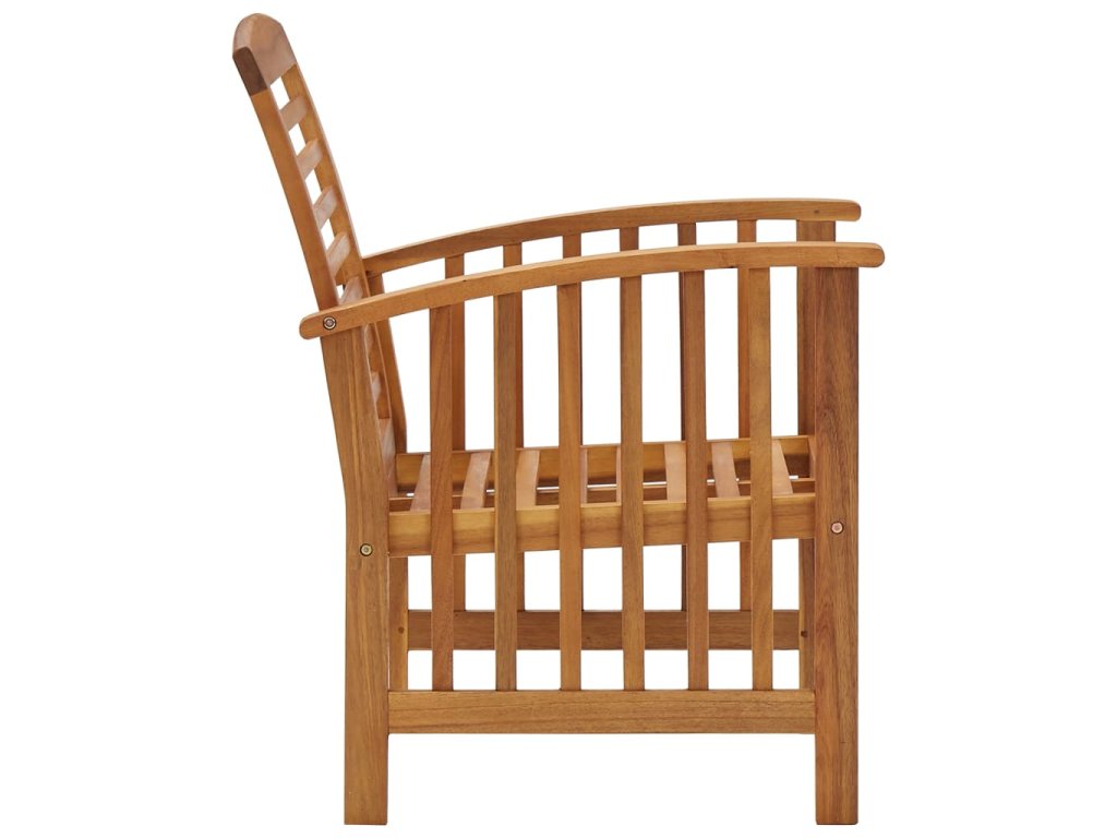 Set zahradního nábytku je zhotovený z masivního akáciového dřeva s olejovou úpravou, je stabilní a má dlouhou životnost. Konferenční stolek z masivní dřevěnou stolní deskou s lamelovým designem poslouží jako perfektní odkládací plocha pro vaše občerstvení, mísy s ovocem, dekorativní předměty a další nezbytnosti. Na lavičce a křesle s jemně zaobleným opěradlem a loketními opěrkami se velmi pohodlně sedí.