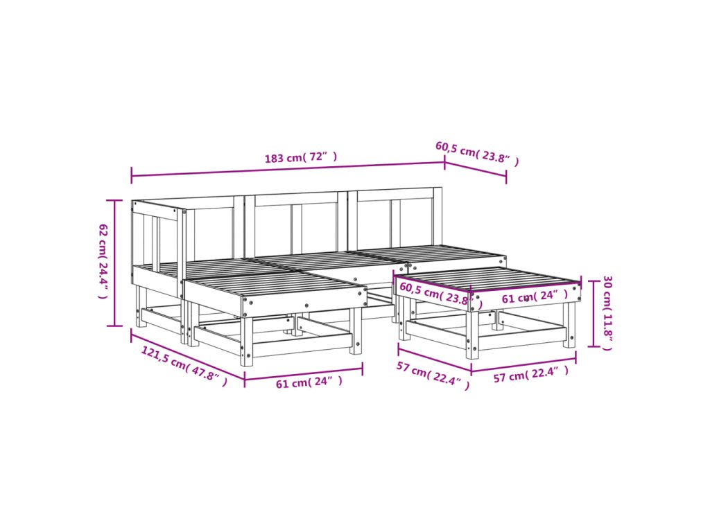 - Rozměry středové pohovky: 61 x 60,5 x 62 cm (Š x H x V)