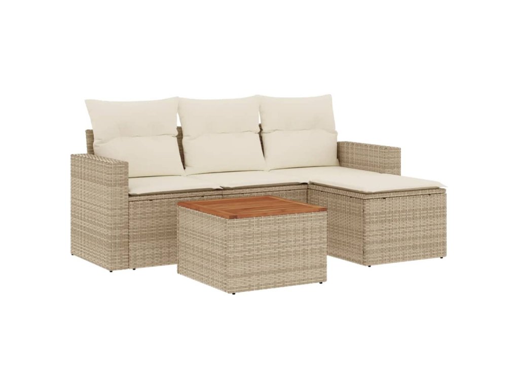 5dílná zahradní sedací souprava s poduškami béžová polyratan 3224091