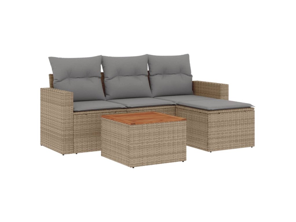 5dílná zahradní sedací souprava s poduškami béžová polyratan 3224092
