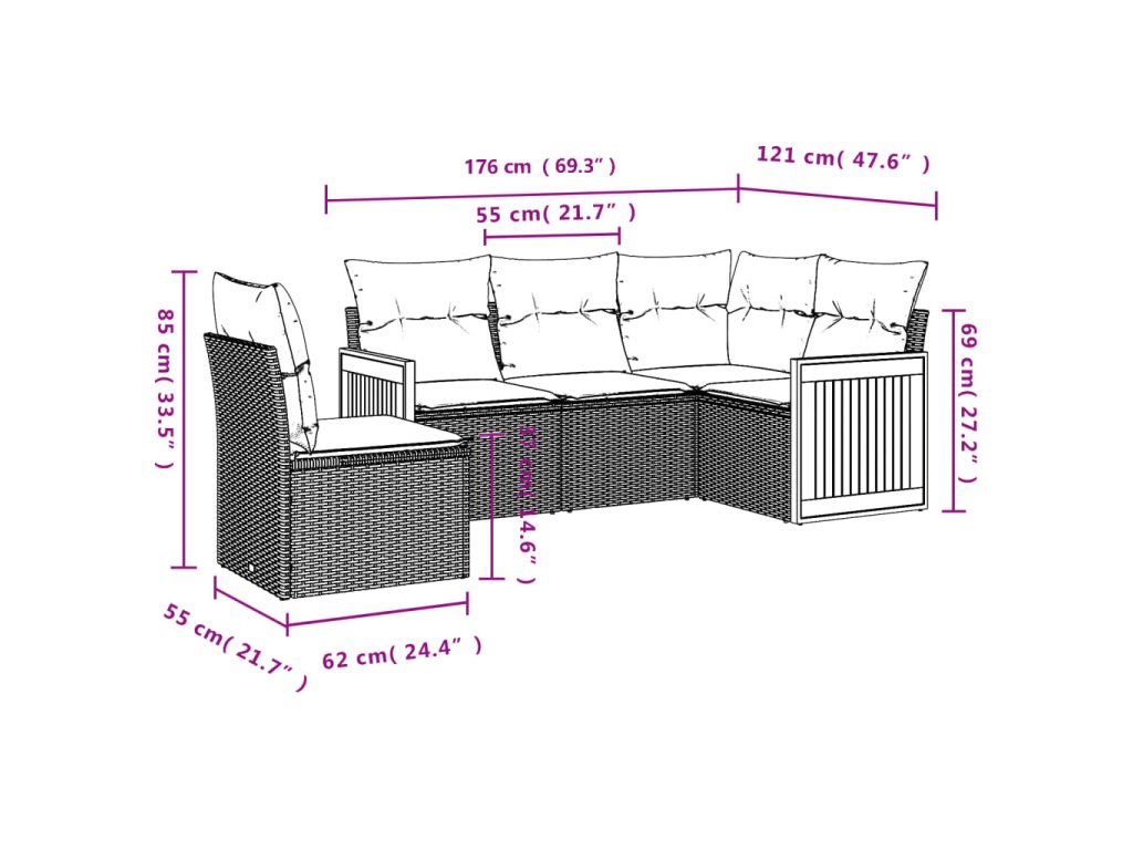 5dílná zahradní sedací souprava s poduškami béžová polyratan 3227654