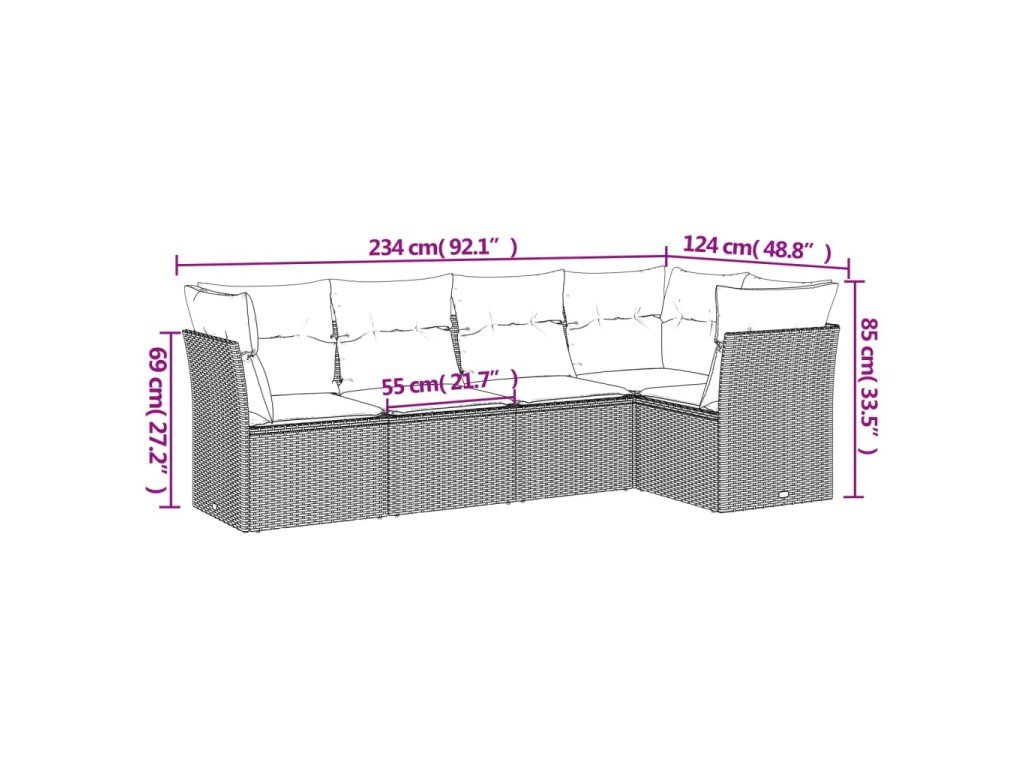 Tato zahradní sedací souprava je dokonalým doplňkem vaší zahrady, terasy nebo dvorku a poskytne vám pohodlné a příjemné místo, kde si můžete povídat s rodinou a přáteli nebo jen tak odpočívat a užívat si pobyt venku.