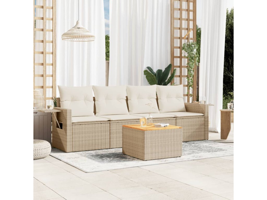 5dílná zahradní sedací souprava s poduškami béžová polyratan 3256772