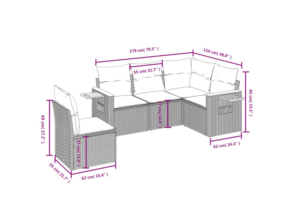 5dílná zahradní sedací souprava s poduškami béžová polyratan 3259216