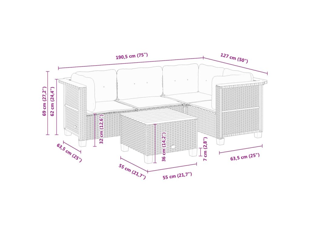 5dílná zahradní sedací souprava s poduškami béžová polyratan 3261805