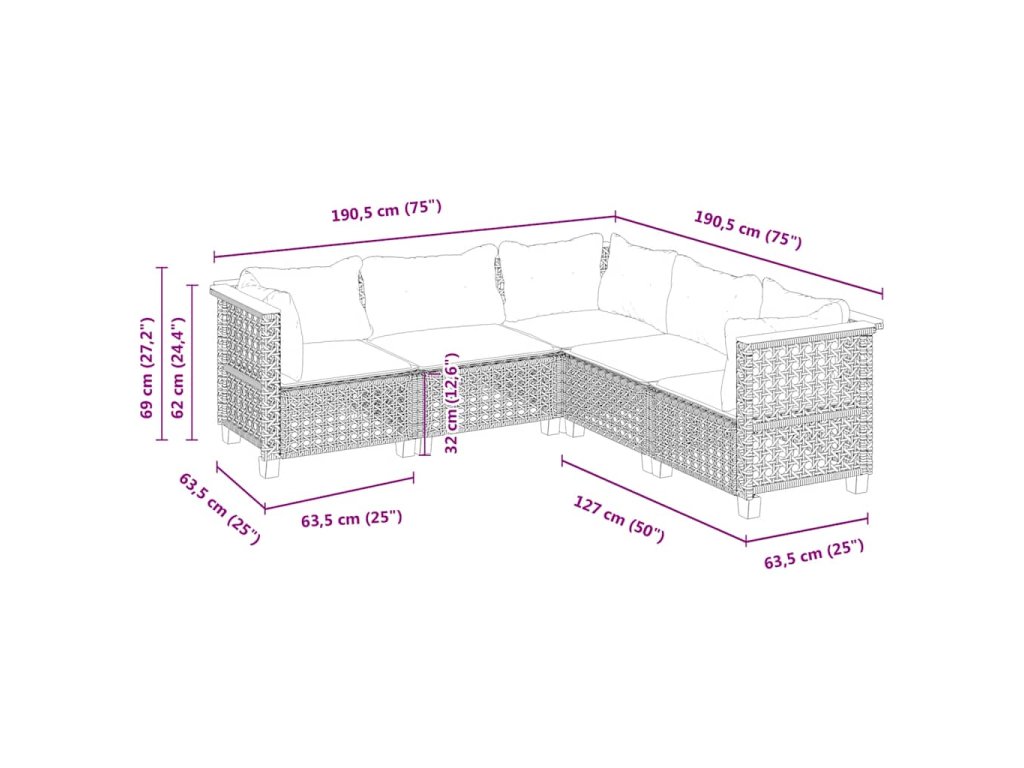 Tato zahradní sedací souprava je dokonalým doplňkem vaší zahrady, terasy nebo dvorku a poskytne vám pohodlné a příjemné místo, kde si můžete povídat s rodinou a přáteli nebo jen tak odpočívat a užívat si pobyt venku.