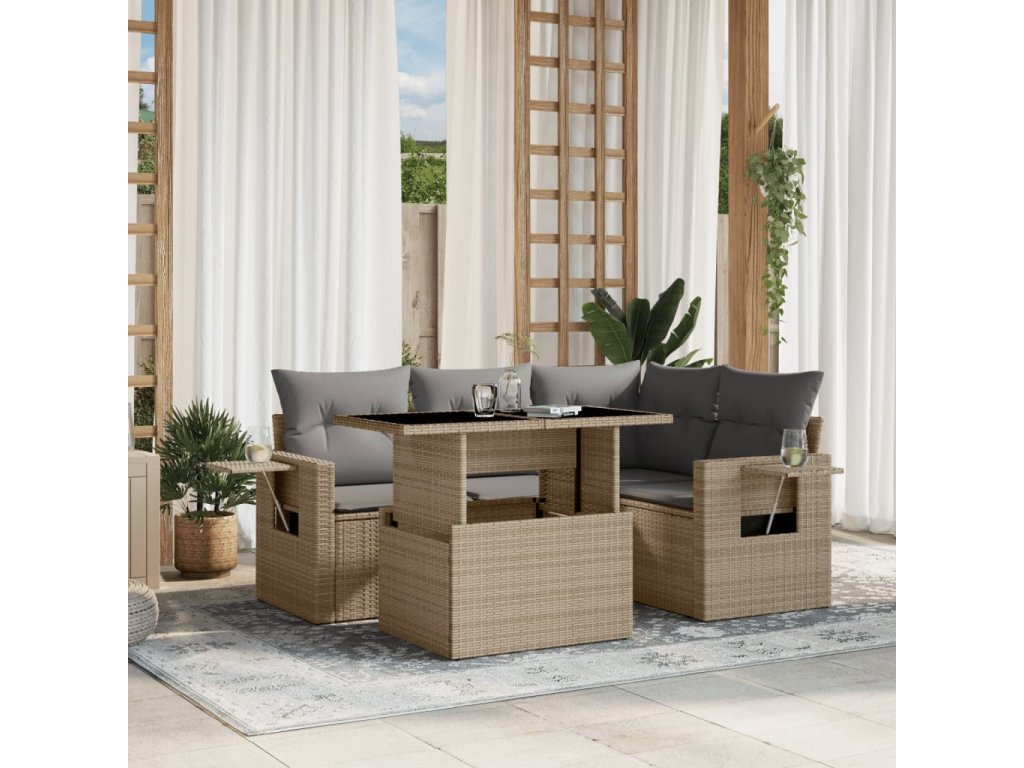 5dílná zahradní sedací souprava s poduškami béžová polyratan 3267879