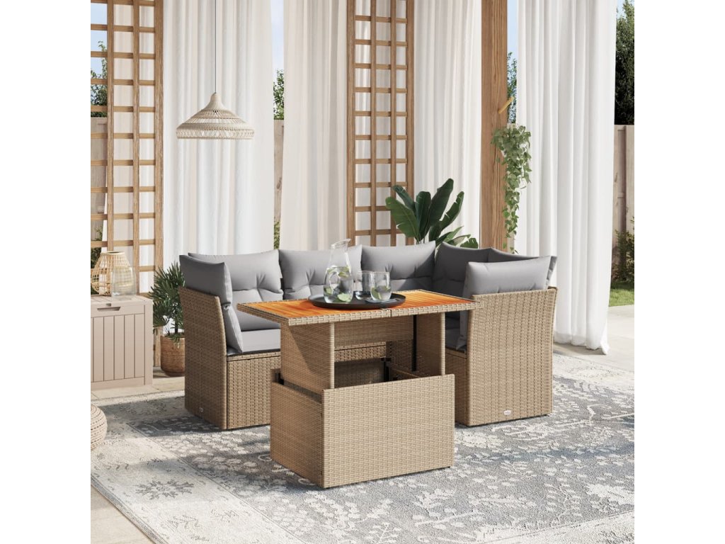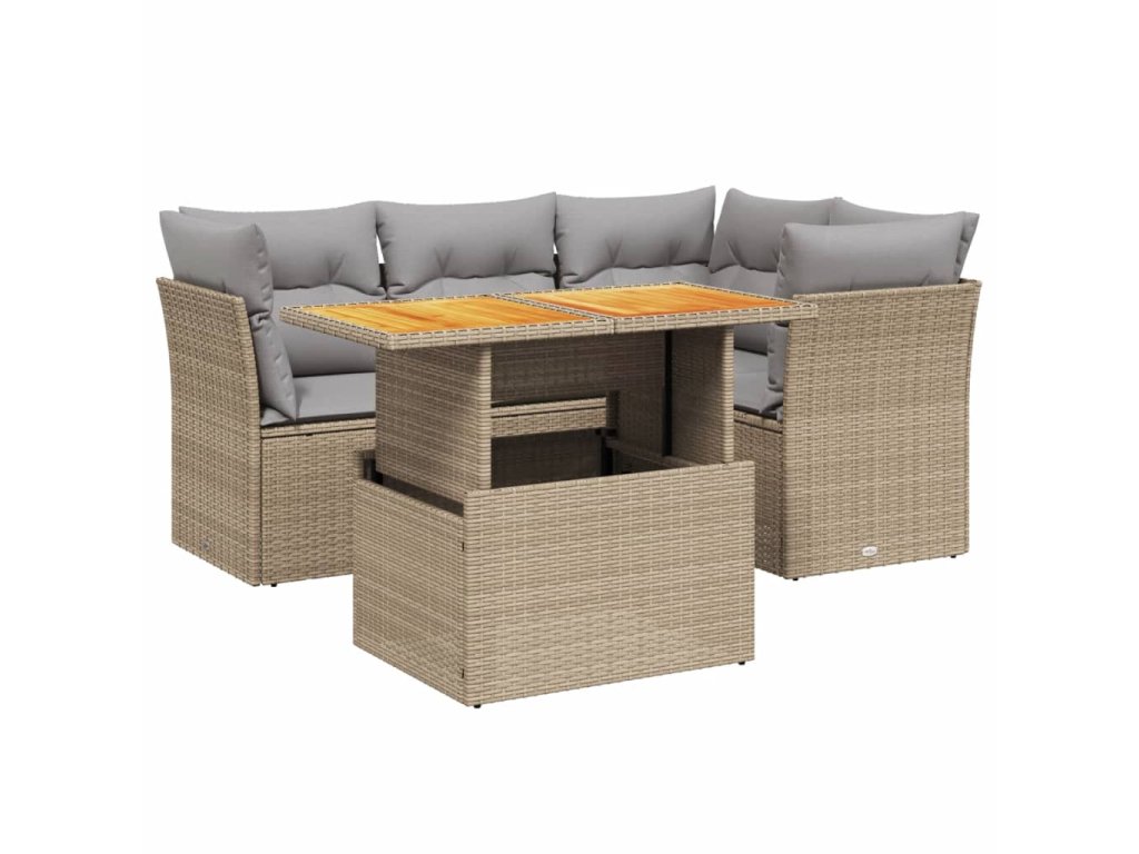 5dílná zahradní sedací souprava s poduškami béžová polyratan 3270814