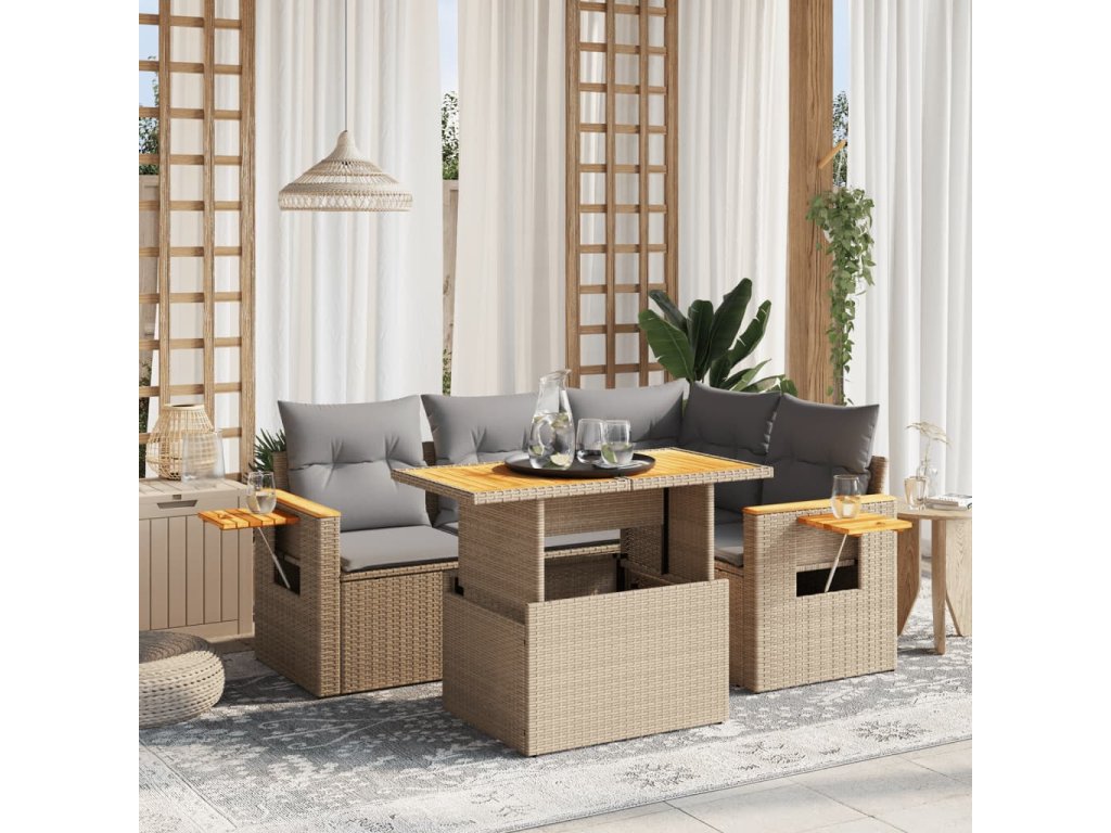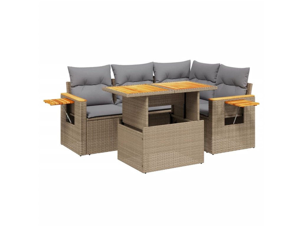 5dílná zahradní sedací souprava s poduškami béžová polyratan 3273502