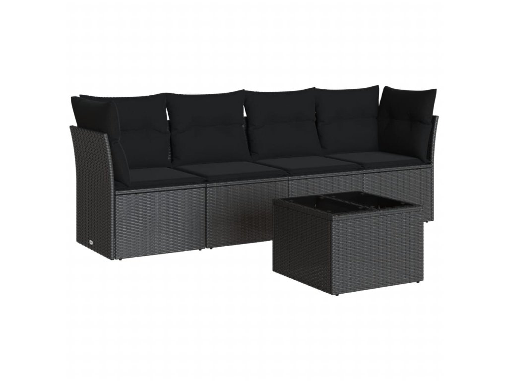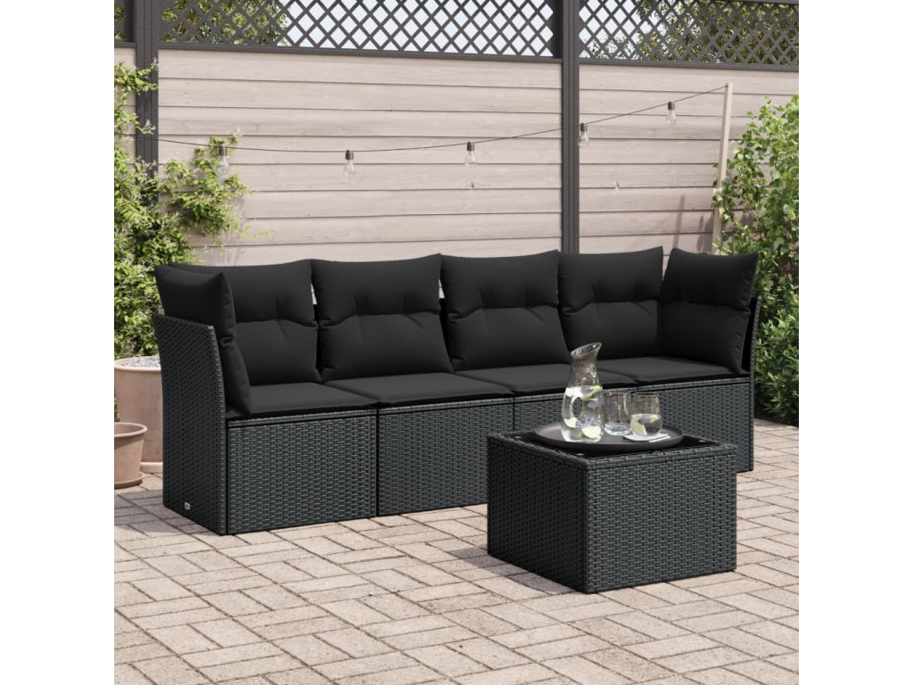 5dílná zahradní sedací souprava s poduškami černá polyratan 3217235