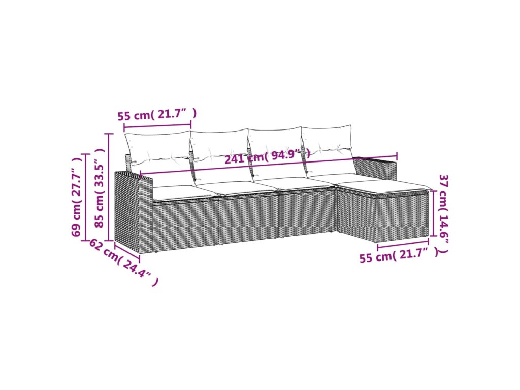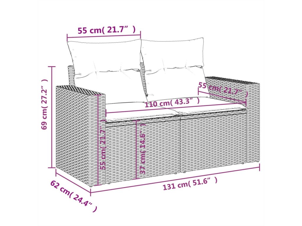 Tato zahradní sedací souprava je dokonalým doplňkem vaší zahrady, terasy nebo dvorku a poskytne vám pohodlné a příjemné místo, kde si můžete povídat s rodinou a přáteli nebo jen tak odpočívat a užívat si pobyt venku.