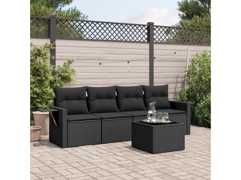5dílná zahradní sedací souprava s poduškami černá polyratan 3219884