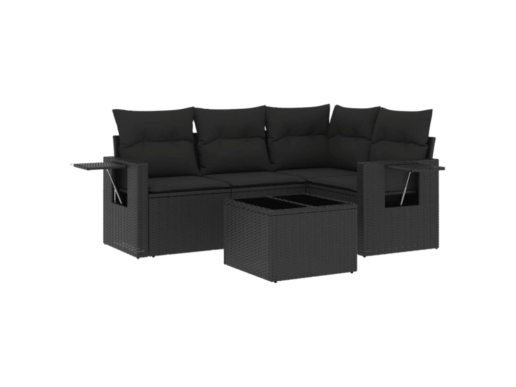 5dílná zahradní sedací souprava s poduškami černá polyratan 3220114