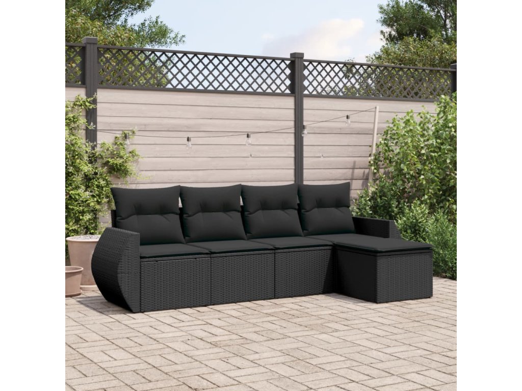 5dílná zahradní sedací souprava s poduškami černá polyratan 3221284
