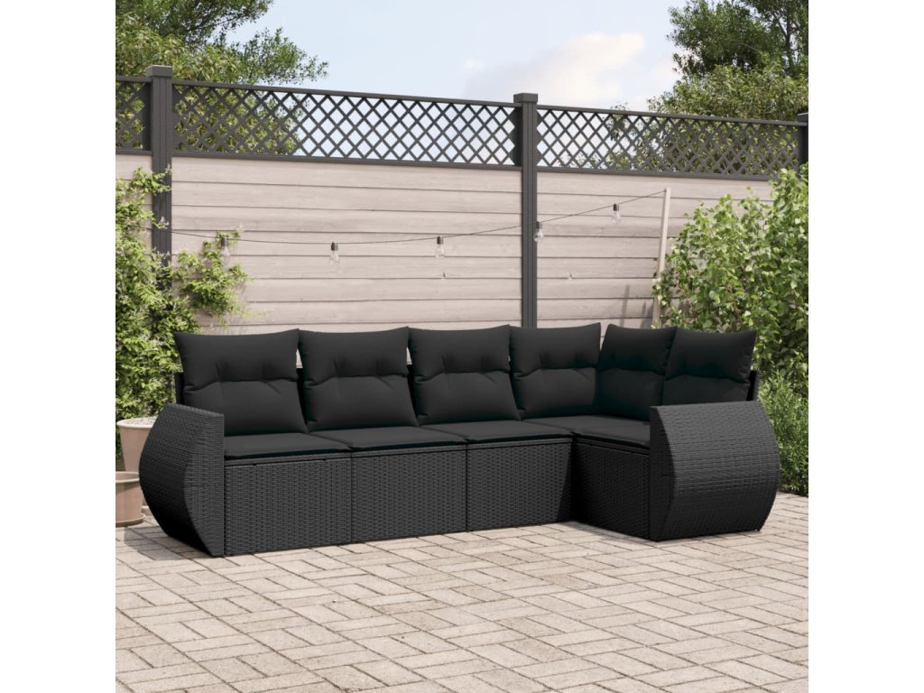 5dílná zahradní sedací souprava s poduškami černá polyratan 3221324