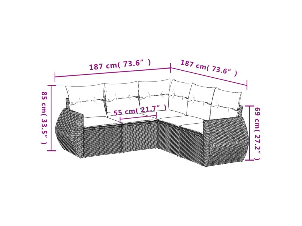 - Modulární design: Tato sada venkovního nábytku se vyznačuje modulární konstrukcí, je tedy zcela flexibilní a lze ji snadno přemisťovat, takže si můžete uspořádat venkovní nábytek dle vašich potřeb.
