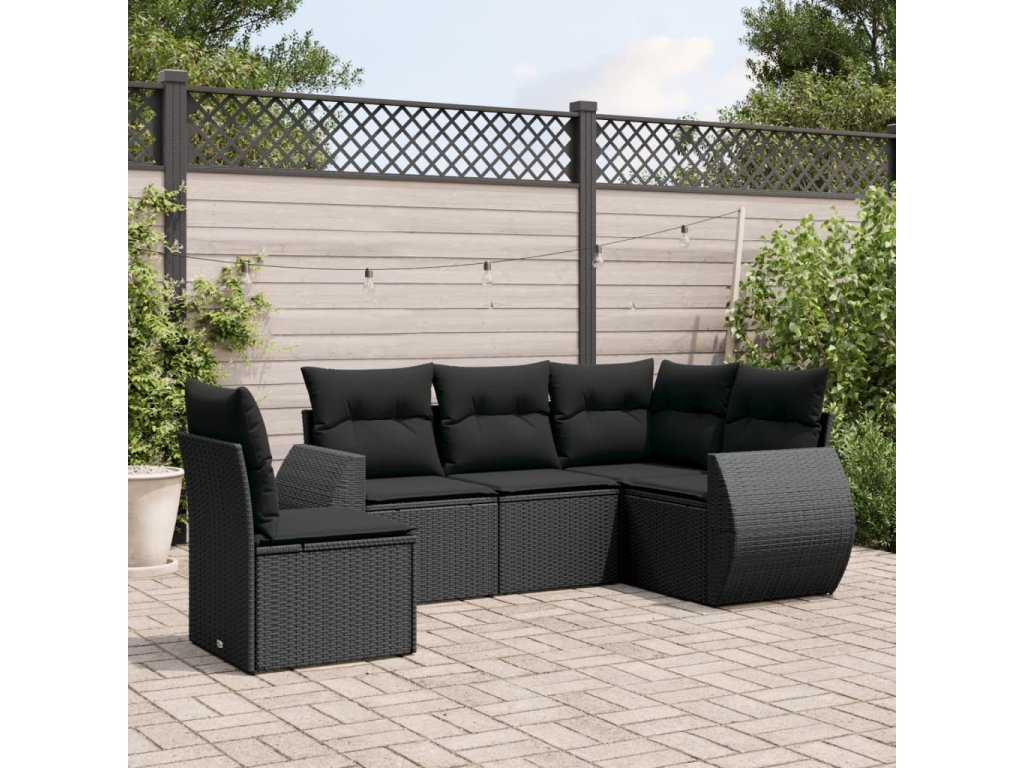 5dílná zahradní sedací souprava s poduškami černá polyratan 3221364