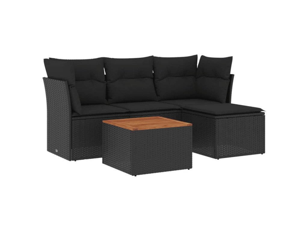 5dílná zahradní sedací souprava s poduškami černá polyratan 3223605