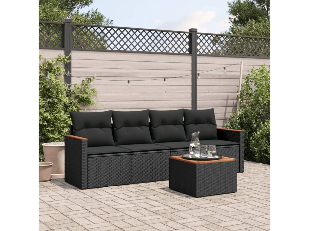 5dílná zahradní sedací souprava s poduškami černá polyratan 3225775