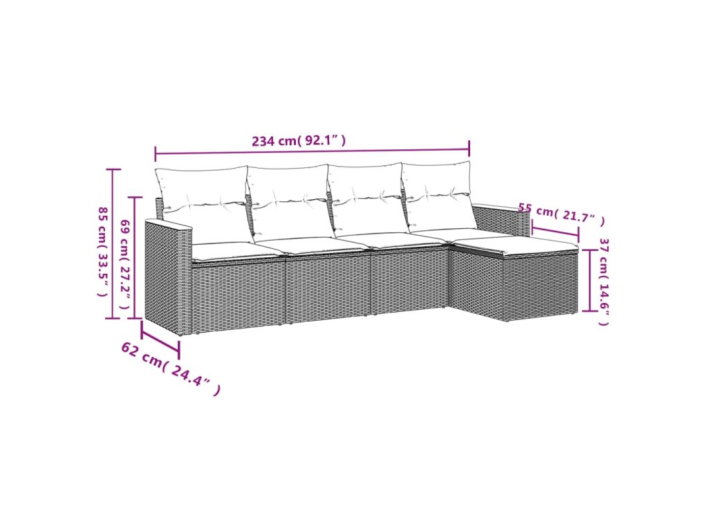 Tato zahradní sedací souprava je dokonalým doplňkem vaší zahrady, terasy nebo dvorku a poskytne vám pohodlné a příjemné místo, kde si můžete povídat s rodinou a přáteli nebo jen tak odpočívat a užívat si pobyt venku.