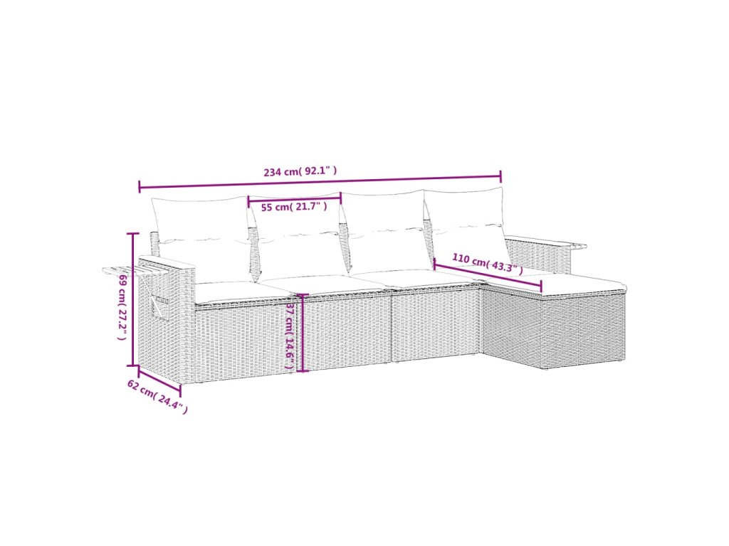 Tato zahradní sedací souprava je dokonalým doplňkem vaší zahrady, terasy nebo dvorku a poskytne vám pohodlné a příjemné místo, kde si můžete povídat s rodinou a přáteli nebo jen tak odpočívat a užívat si pobyt venku.