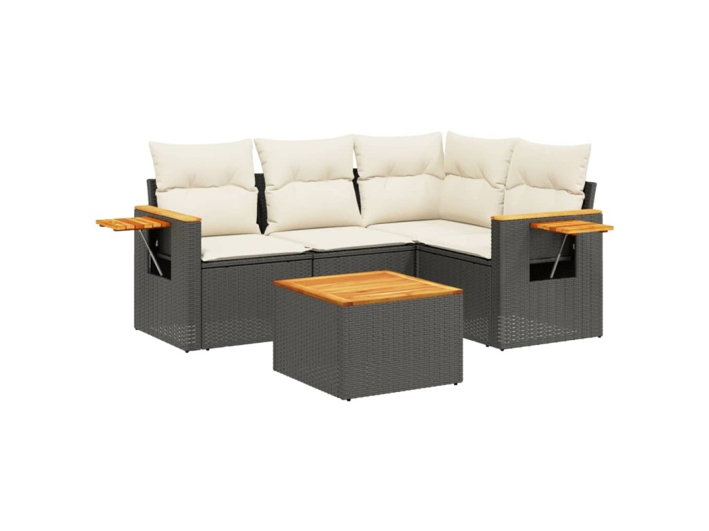 5dílná zahradní sedací souprava s poduškami černá polyratan 3226777