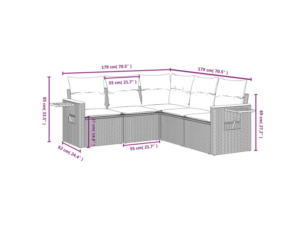 Tato zahradní sedací souprava je dokonalým doplňkem vaší zahrady, terasy nebo dvorku a poskytne vám pohodlné a příjemné místo, kde si můžete povídat s rodinou a přáteli nebo jen tak odpočívat a užívat si pobyt venku.