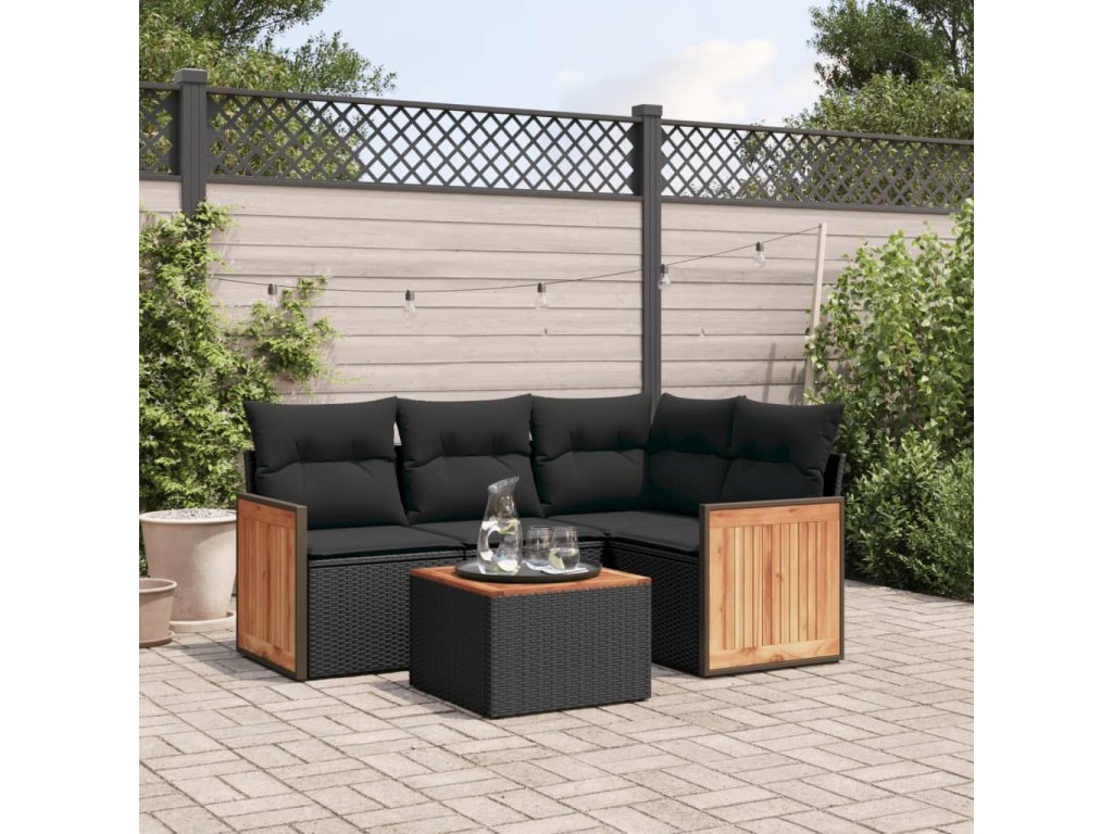 5dílná zahradní sedací souprava s poduškami černá polyratan 3227616