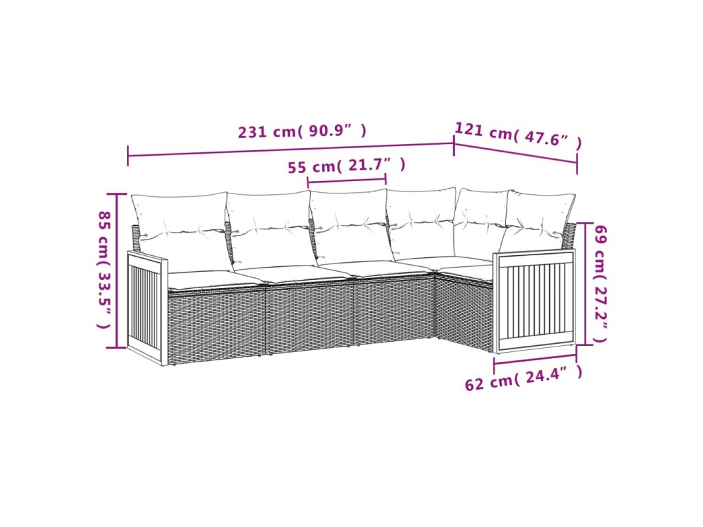 Tato zahradní sedací souprava je dokonalým doplňkem vaší zahrady, terasy nebo dvorku a poskytne vám pohodlné a příjemné místo, kde si můžete povídat s rodinou a přáteli nebo jen tak odpočívat a užívat si pobyt venku.