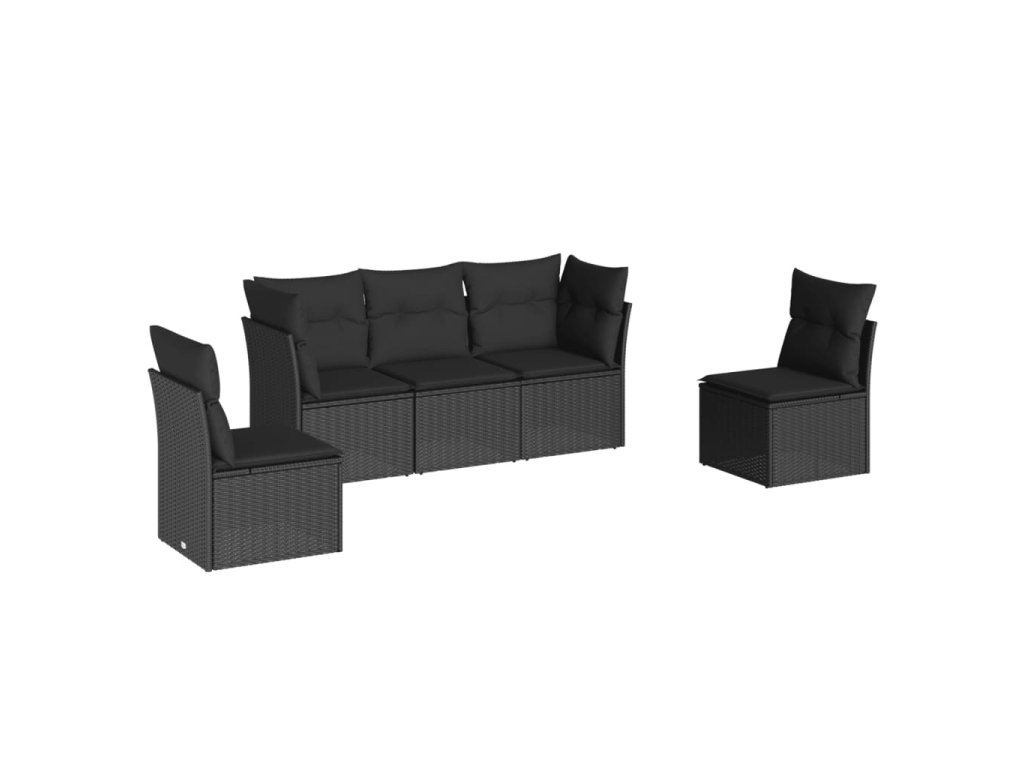 5dílná zahradní sedací souprava s poduškami černá polyratan 3249184