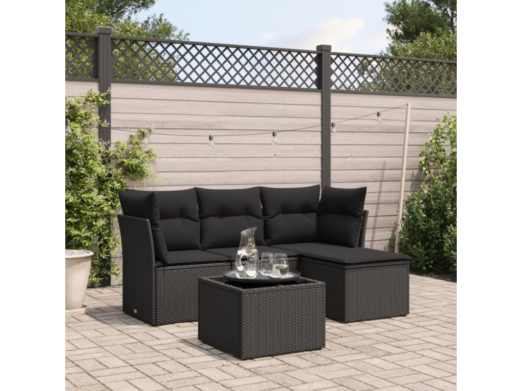 5dílná zahradní sedací souprava s poduškami černá polyratan 3249384