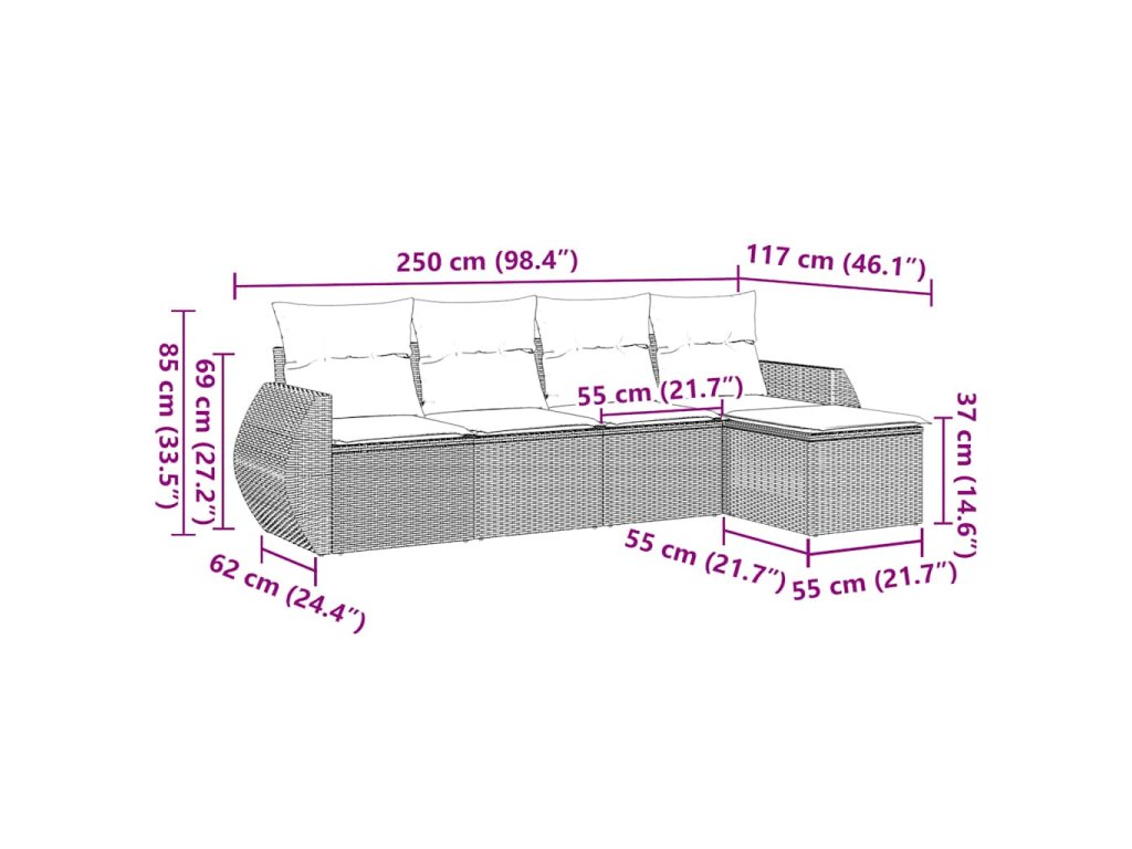 Tato zahradní sedací souprava je dokonalým doplňkem vaší zahrady, terasy nebo dvorku a poskytne vám pohodlné a příjemné místo, kde si můžete povídat s rodinou a přáteli nebo jen tak odpočívat a užívat si pobyt venku.