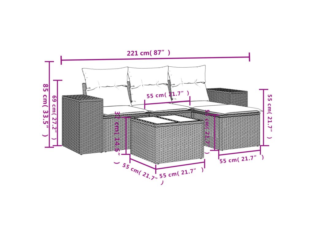 5dílná zahradní sedací souprava s poduškami černá polyratan 3254812