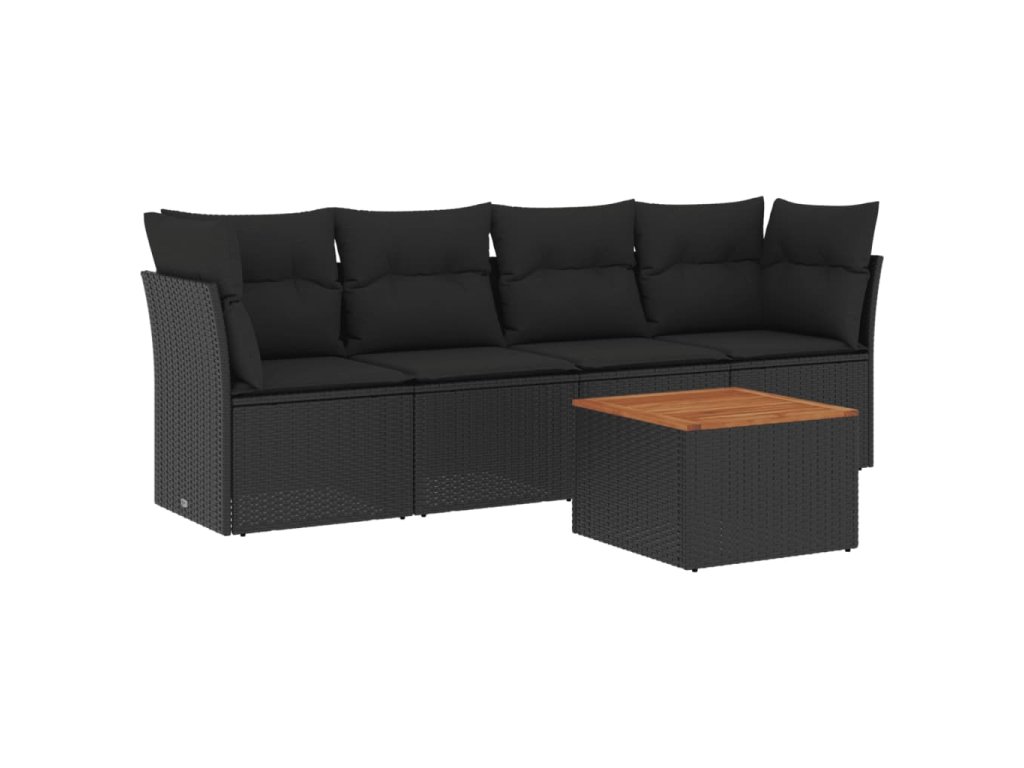 5dílná zahradní sedací souprava s poduškami černá polyratan 3255803