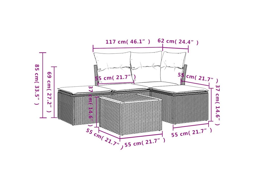 Tato zahradní sedací souprava je dokonalým doplňkem vaší zahrady, terasy nebo dvorku a poskytne vám pohodlné a příjemné místo, kde si můžete povídat s rodinou a přáteli nebo jen tak odpočívat a užívat si pobyt venku.