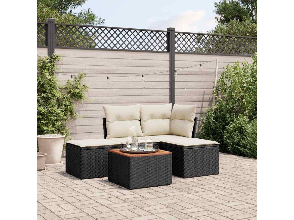 5dílná zahradní sedací souprava s poduškami černá polyratan 3255916