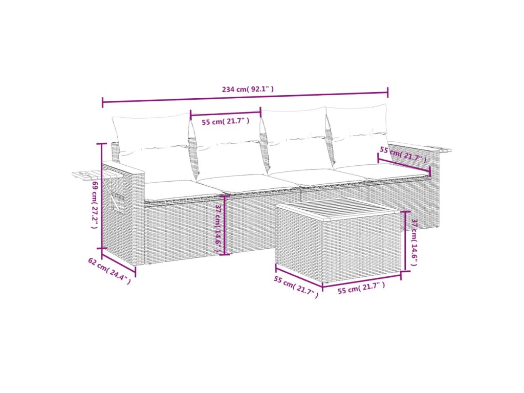 Tato zahradní sedací souprava je dokonalým doplňkem vaší zahrady, terasy nebo dvorku a poskytne vám pohodlné a příjemné místo, kde si můžete povídat s rodinou a přáteli nebo jen tak odpočívat a užívat si pobyt venku.