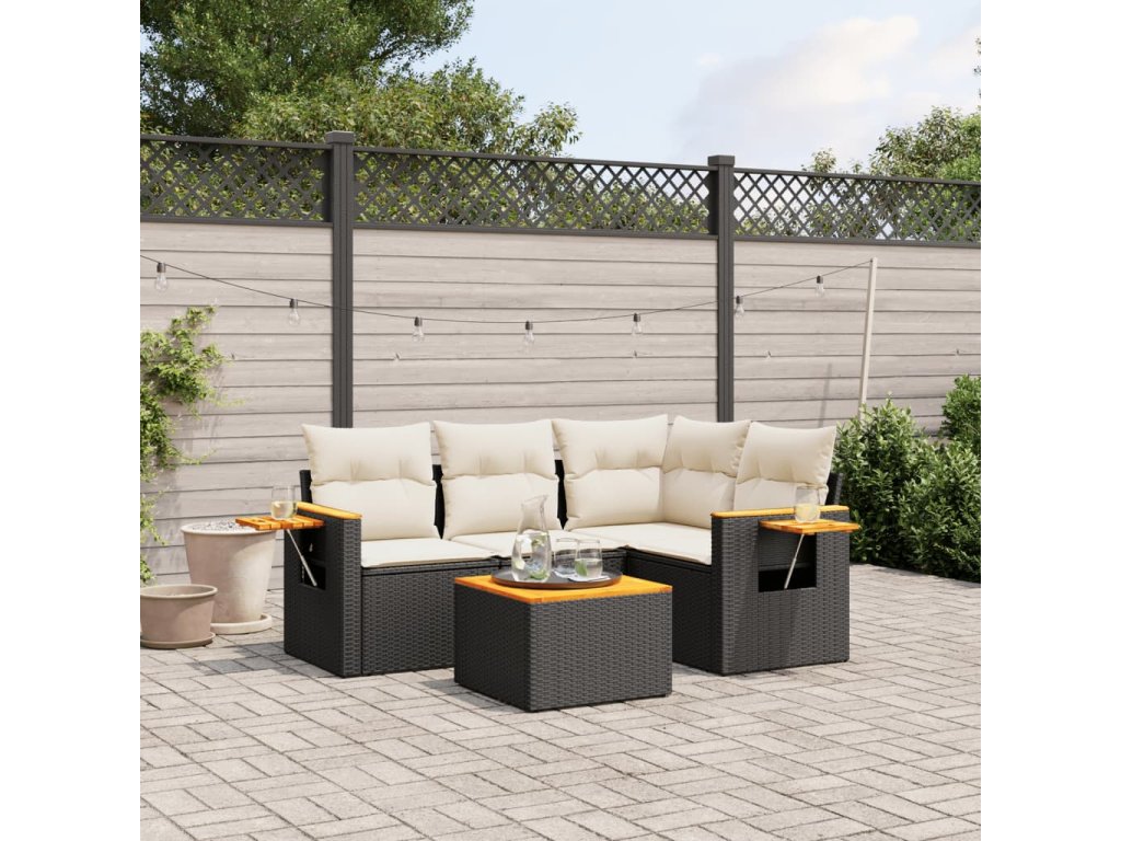 5dílná zahradní sedací souprava s poduškami černá polyratan 3259179