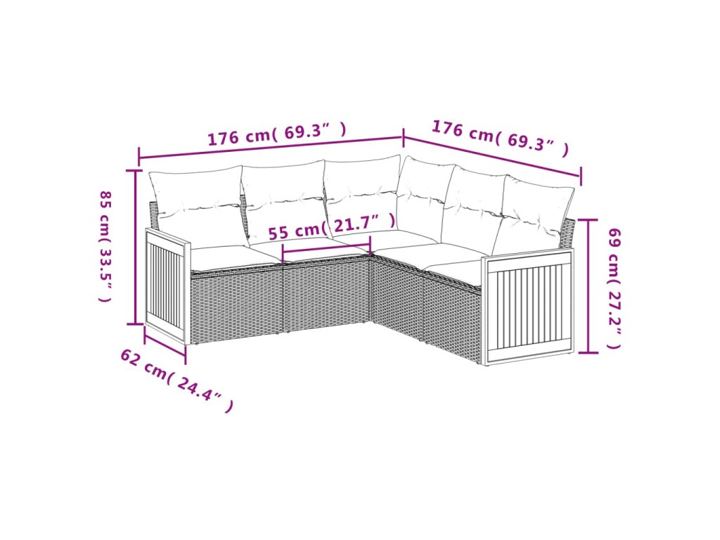 Tato zahradní sedací souprava je dokonalým doplňkem vaší zahrady, terasy nebo dvorku a poskytne vám pohodlné a příjemné místo, kde si můžete povídat s rodinou a přáteli nebo jen tak odpočívat a užívat si pobyt venku.