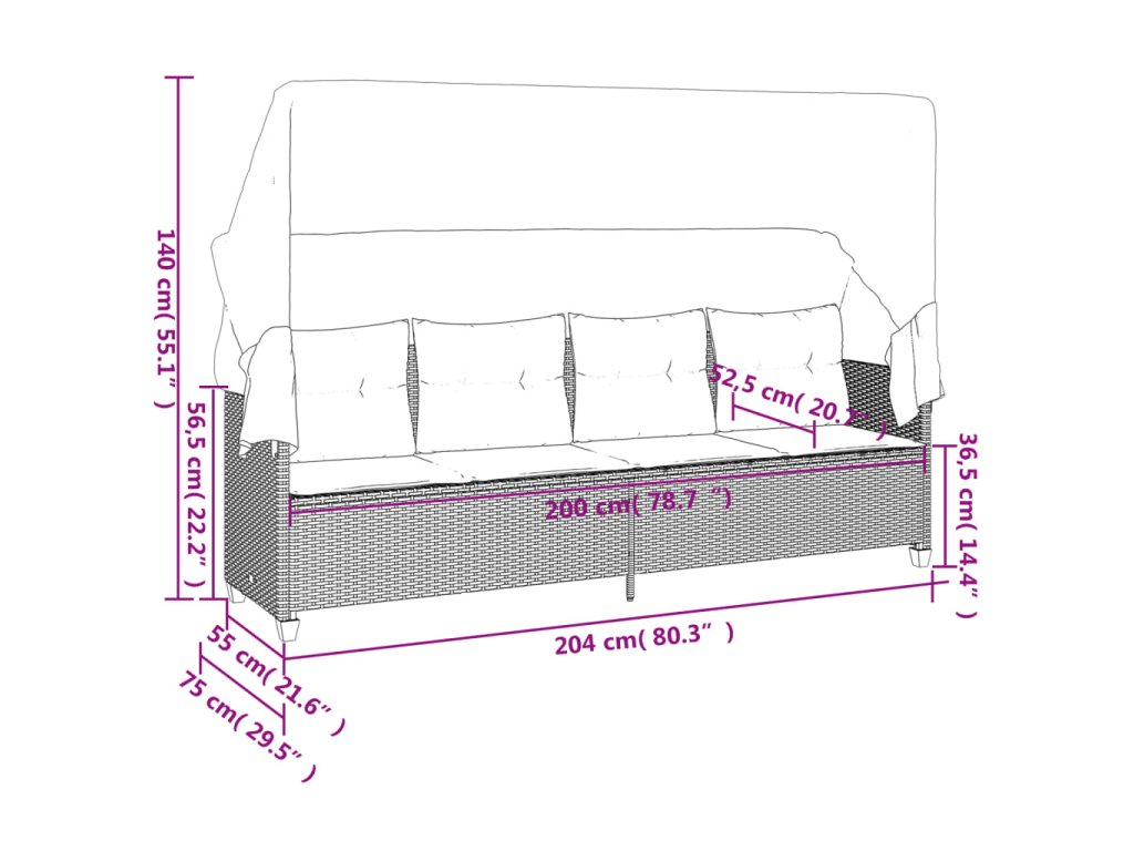 - Rozměry bez stříšky: 204 x 55 x 69,5 cm (Š x H x V)