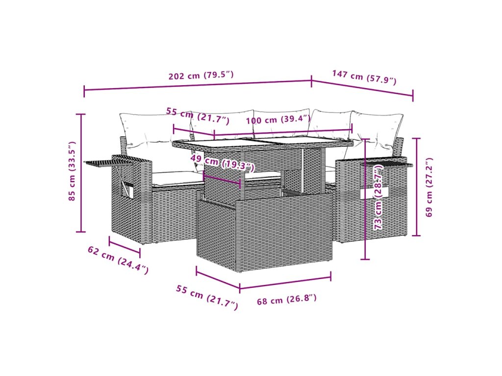 Tato zahradní sedací souprava je dokonalým doplňkem vaší zahrady, terasy nebo dvorku a poskytne vám pohodlné a příjemné místo, kde si můžete povídat s rodinou a přáteli nebo jen tak odpočívat a užívat si pobyt venku.
