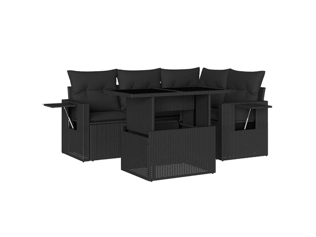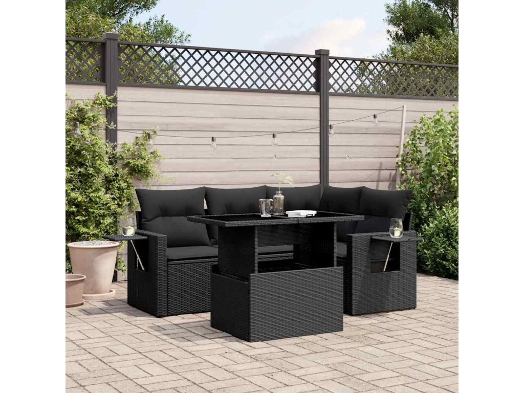 5dílná zahradní sedací souprava s poduškami černá polyratan 3267875