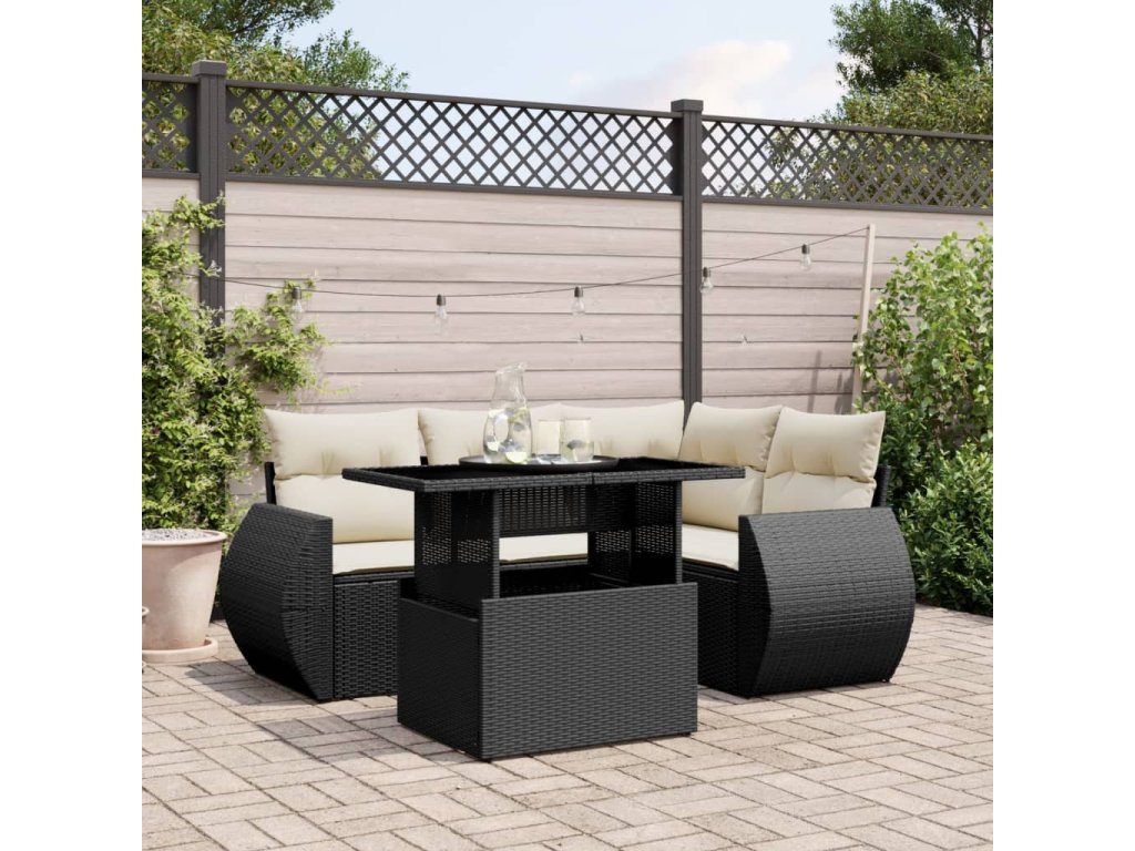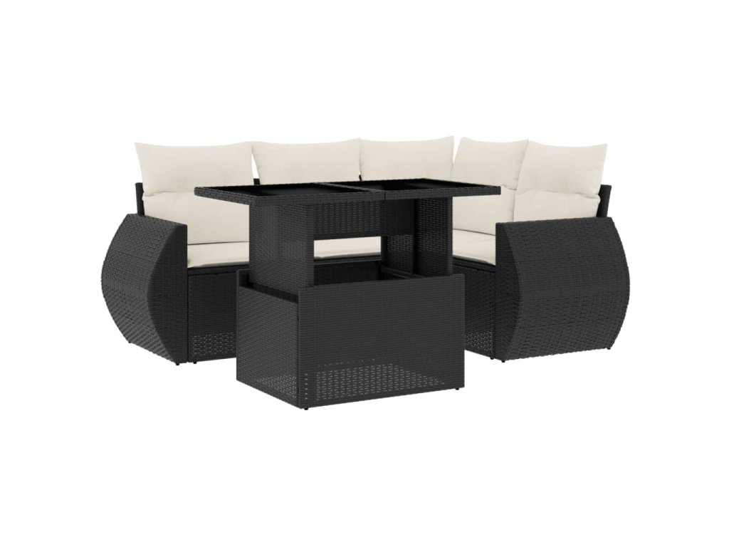 5dílná zahradní sedací souprava s poduškami černá polyratan 3268506