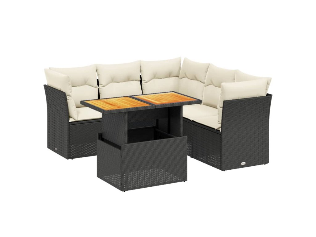 5dílná zahradní sedací souprava s poduškami černá polyratan 3270825