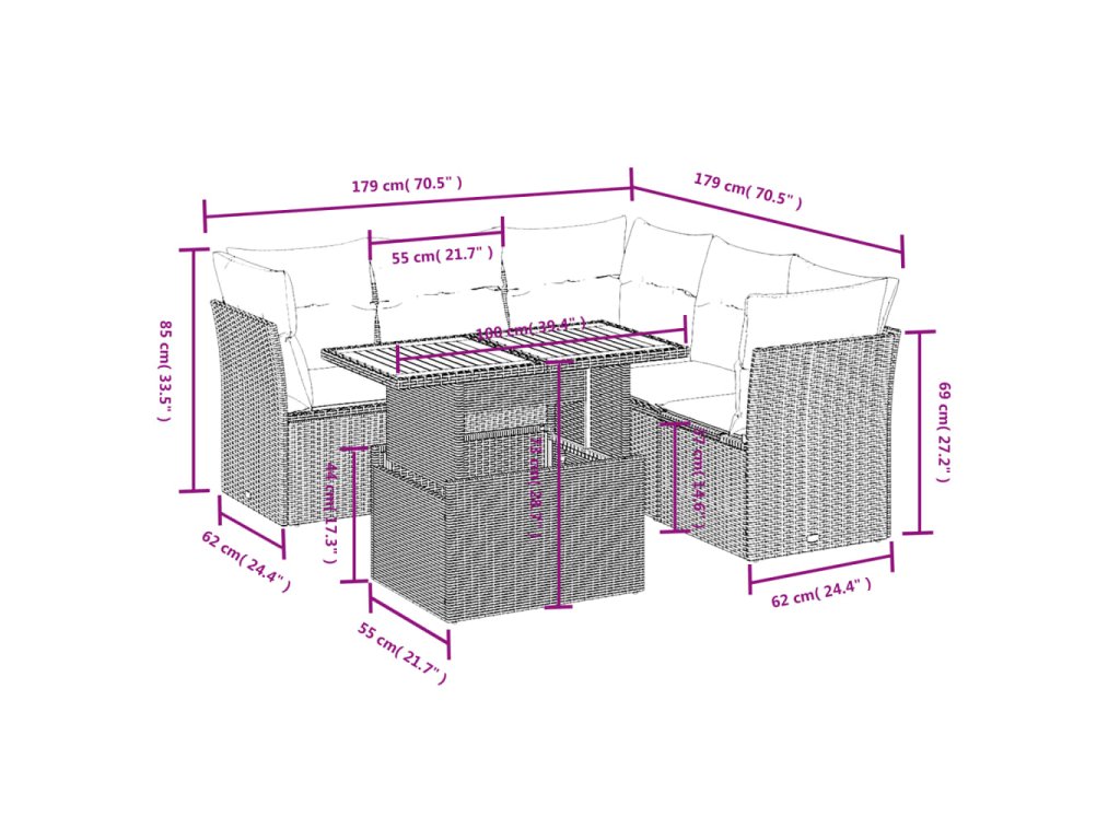 Tato zahradní sedací souprava je dokonalým doplňkem vaší zahrady, terasy nebo dvorku a poskytne vám pohodlné a příjemné místo, kde si můžete povídat s rodinou a přáteli nebo jen tak odpočívat a užívat si pobyt venku.