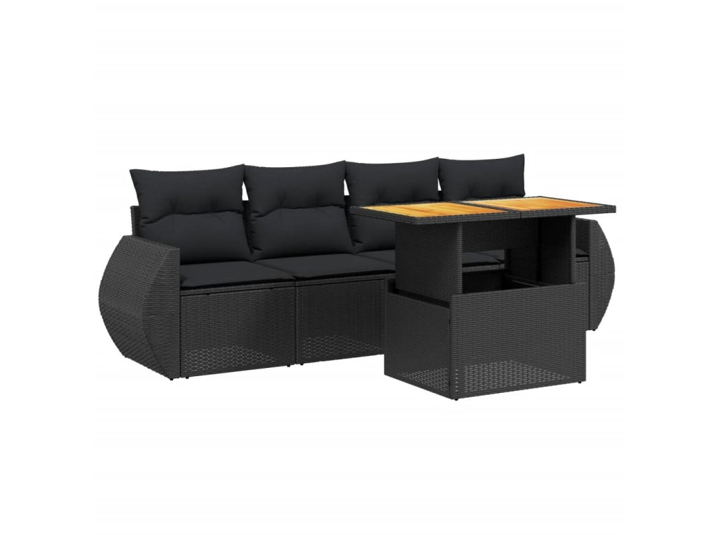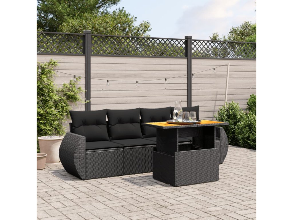 5dílná zahradní sedací souprava s poduškami černá polyratan 3272070