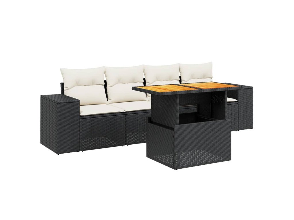5dílná zahradní sedací souprava s poduškami černá polyratan 3272512